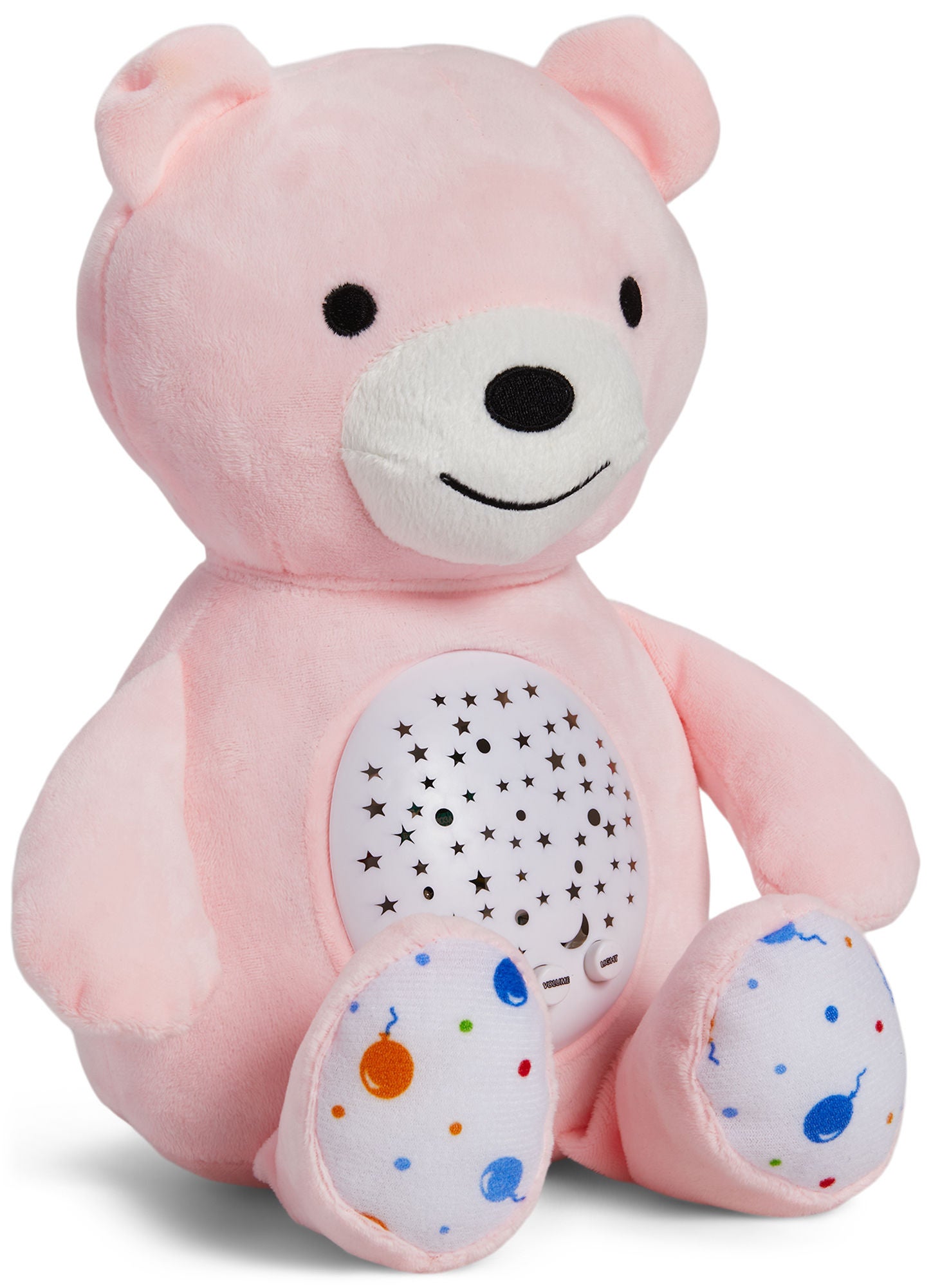 En hyggelig natlampe i form af en lyserød bjørn fra Alice & Fox. Denne lampe bliver en tryg natteven med dens bløde lys og beroligende musik. Lampen har tre knapper, så dit barn kan skifte musik og indstille volume og lysstyrke.