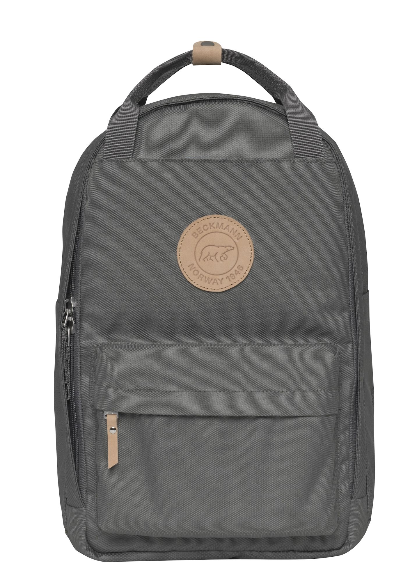 Opdag en rygsæk, der kombinerer stil og funktionalitet til dit barn. Den pale green farve giver en frisk og moderne tone, mens det enkle design gør den uimodståelig for både børn og forældre. Udstyret med et rundt beige emblem, der pryder forsiden, bærer rygsækken stolt historien fra Beckmann, der har skabt kvalitetsprodukter siden 1946.