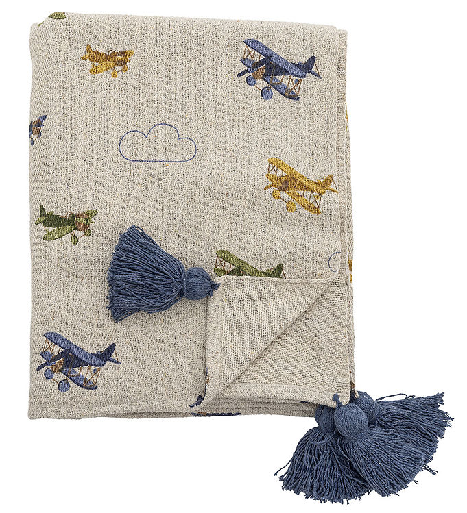 Oplev et charmerende og hyggeligt indslag til børneværelset med dette skønne tæppe fra Bloomingville. Tæppet er prydet med et yndigt flyvemaskine-design, der inspirerer til drømme om eventyr i det blå. Med sine broderede motiver af fly i forskellige nuancer og en sky, tilbyder det et kunstnerisk og legende udtryk. De blå kvaster i hjørnerne tilføjer en ekstra dimension af sjov og leg. Farveskalaen består primært af naturlige toner med indslag af blå og grønne nuancer, hvilket gør det perfekt til at skabe en rolig og indbydende atmosfære. Dette tæppe er en ideel tilføjelse til ethvert børneværelse, hvor det både fungerer som et dekorativt element og et blødt underlag for leg og hygge.