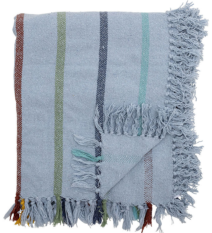 Oplev den perfekte kombination af stil og komfort med dette smukke Frey tæppe i blå fra Bloomingville. Dette tæppe måler 160×130 cm og er designet til at tilføje et strejf af elegance til ethvert børneværelse. Det har en vævet tekstur med flere farvede striber i forskellige nuancer, der giver det et unikt og indbydende look. De dekorative frynser langs kanterne tilføjer en charmerende detalje, der gør tæppet til et iøjnefaldende element i rummet. Ideelt til at skabe en hyggelig atmosfære, hvor dit barn kan lege, læse eller tage en lur.