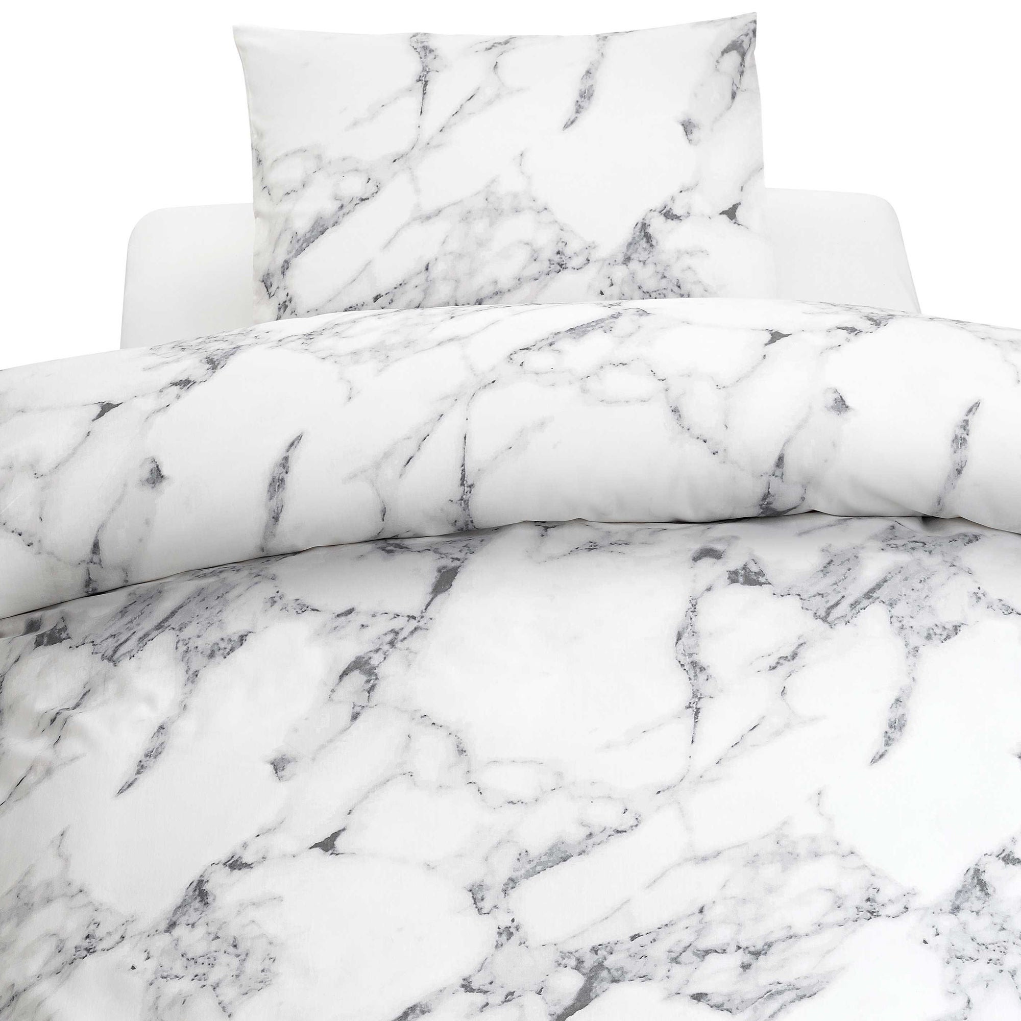 Blødt, luftigt sengesæt fra Borganäs med et marmormotiv.