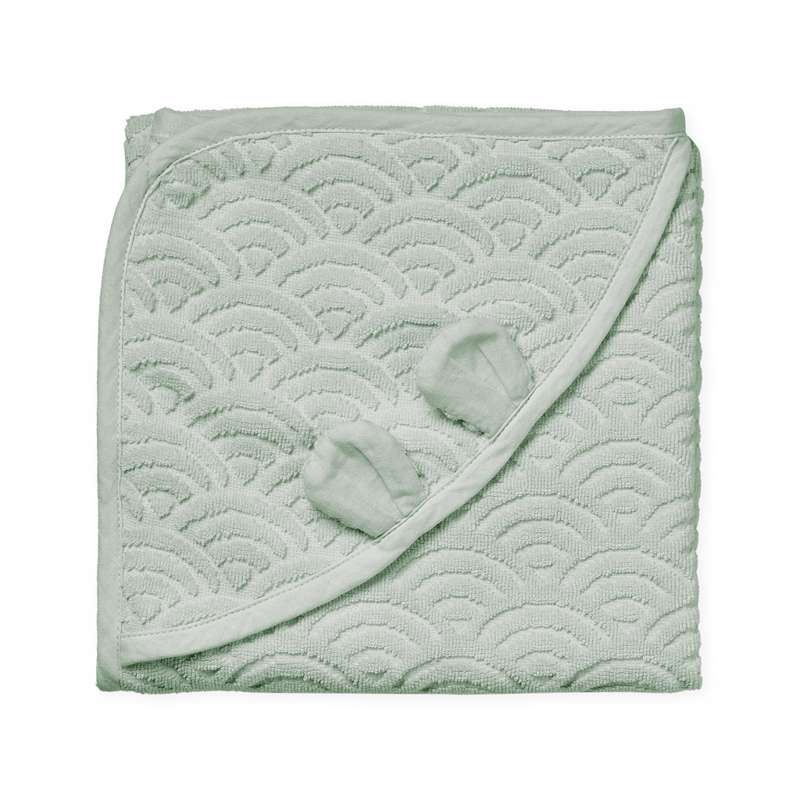 Efter et dejligt lunt bad venter det blødeste knus i Dusty Green. Svøb din baby i et håndklæde, der både varmer og forkæler med det tidløse bølgemønster. Den lille hætte topper oplevelsen med fine bjørneører, som giver et nuttet twist og hjælper med at bevare varmen omkring hovedet.