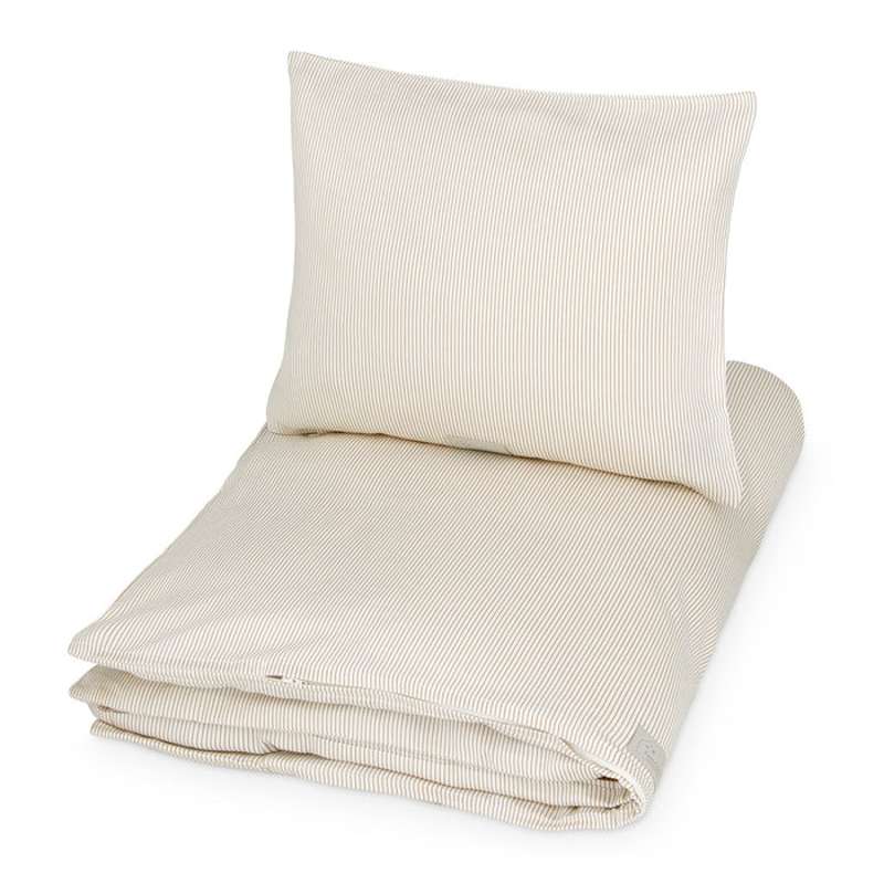 Forestil dig et øjeblik, hvor du lægger dig til rette under bløde striber i en varm camelfarve, der inviterer til ro og velvære. Dette luksuriøse sengesæt i satinvævet, økologisk bomuld forvandler din seng til en oase, hvor du vågner udhvilet og fuld af energi til dagens udfordringer.