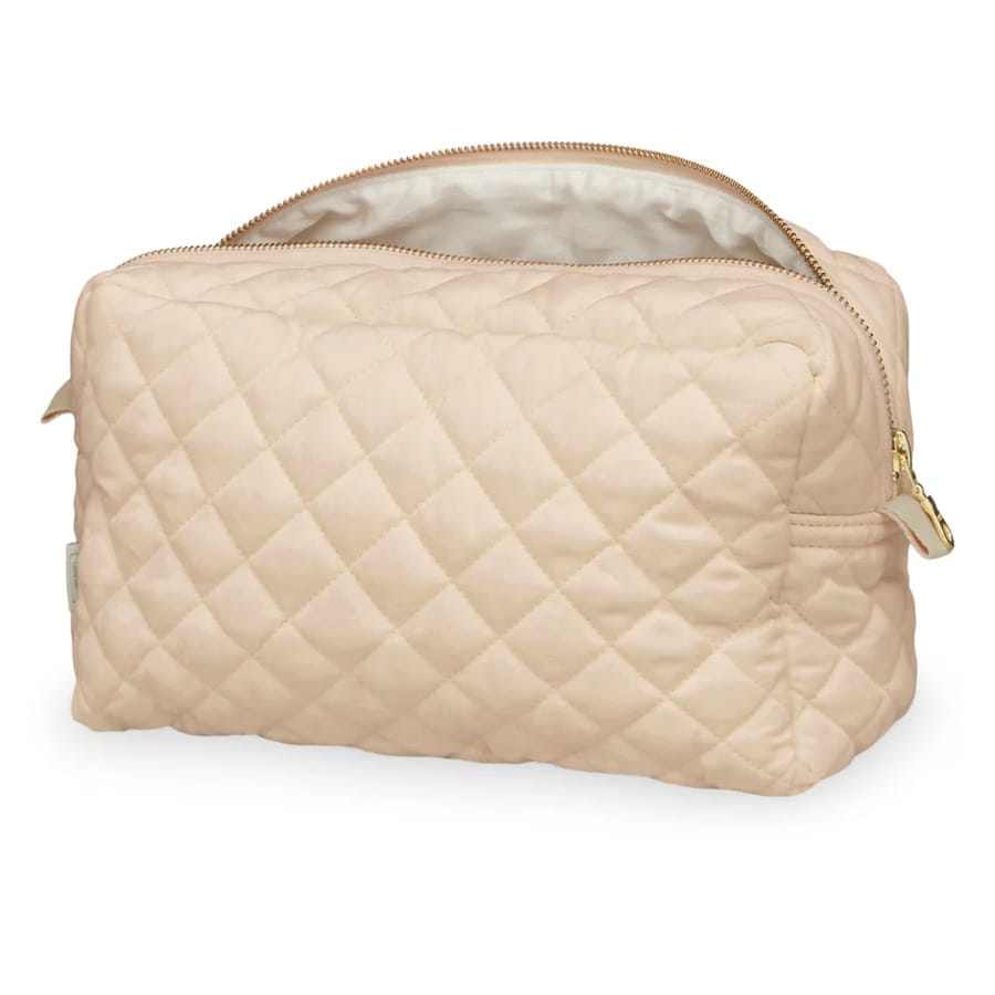 Opdag den perfekte løsning til organisering af alle dine toiletsager med denne store toilettaske fra Cam Cam. Med sit elegante quiltede design i en smuk praline-tone tilbyder tasken både funktionalitet og tidløs stil. Den rummelige indretning gør det nemt at holde styr på alt fra tandbørster til cremer, mens den synlige lynlås sikrer nem adgang til dine ejendele. Taskens neutrale farve gør den til et stilfuldt tilbehør, der nemt kan passe ind i enhver sammenhæng, hvor elegance og praktisk opbevaring er i højsædet. Perfekt til både hjemmebrug og rejser, og fremstillet i et blødt materiale, der holder dine ting sikre og organiserede.