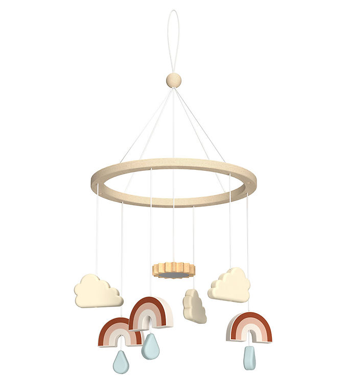 Oplev magien i børneværelset med en smuk træuro fra Cam Cam, der bringer naturens skønhed ind i dit hjem. Denne uro er designet med en cirkulær ophængsdel, hvorfra skyer, regnbuer og dråber elegant hænger ned. Med sine afdæmpede og naturlige farver er uroen ikke bare en fryd for øjet, men også en kilde til ro og drømme for de små. Giv dit barn en følelse af tryghed og glæde ved at tilføje et strejf af naturlig charme til deres soveværelse. En perfekt gaveidé til nybagte forældre, der ønsker at skabe en harmonisk og stilren atmosfære i deres barns omgivelser.