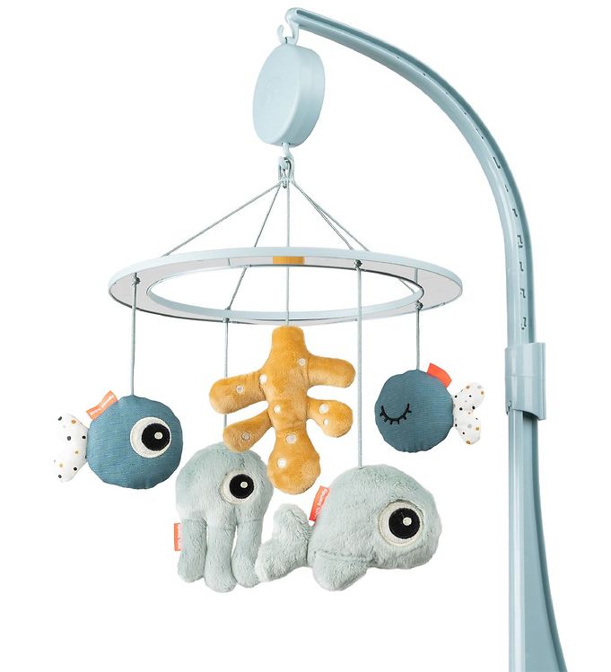 Oplev magien fra havet med denne betagende musikuro til de mindste. Uroen er del af et charmerende havtema og vil uden tvivl skabe en tryg og beroligende atmosfære for dit barn. Fra buen hænger yndige figurer af havdyr som fisk og en blæksprutte, alle i smukke nuancer af blå og grøn, der fænger både barnets øjne og fantasi. Den centrale figur, der ligner koraller, tilføjer et sofistikeret touch. Fremstillet af bløde materialer, kombinerer uroen moderne stil med lyse farver, der passer perfekt ind i ethvert børneværelse. Det er det ideelle tilbehør fra Done By Deer til at skabe en rolig og afslappende søvnoplevelse for din lille.