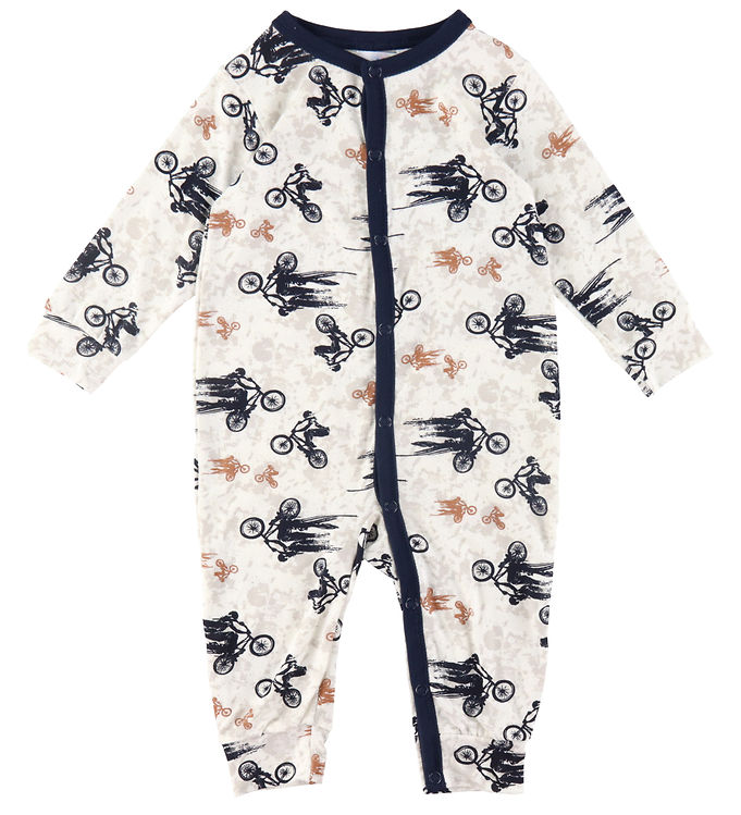 Træd ind i en verden af komfort og stil med denne vidunderlige natdragt fra Joha. Denne dragt er skabt til de små eventyrere, der elsker at sove trygt og godt. Den er designet i en elegant kombination af off-white og marineblå, der tilføjer et strejf af ro til natten. Med sit charmerende cykelmønster i forskellige farver bringer den glæde og sjov til sovetiden. Dragten er udstyret med lange ærmer og ben, hvilket sikrer varme og komfort hele natten. De praktiske knapper langs fronten gør det nemt at tage den af og på, så både forældre og børn kan nyde en problemfri aftenrutine. Joha er kendt for deres kvalitetsmaterialer, og den bløde bambus i denne dragt er ingen undtagelse, hvilket gør den både åndbar og skånsom mod barnets hud. Giv dit barn en magisk nattesøvn fyldt med drømme om cykelrejser og uforglemmelige eventyr.