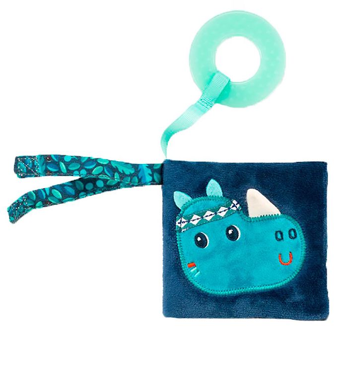 Dette charmerende produkt fra Lilliputiens er en stofbog, der er meget mere end blot en bog. Med sine blå og grønne nuancer fanger den små øjne og stimulerer sanserne hos de mindste. Foran på bogen møder man et venligt næsehorn, der inviterer til timevis af eventyr og sjov. Den bløde tekstur gør det også til en behagelig ledsager for dit barn, uanset hvor I befinder jer. Fastgjort til bogen er en ring, der minder om en bidering – en praktisk detalje, som let beroliger barnet, når gummerne klør. Derudover har bogen en farverig strop, der gør det nemt at hæfte den til barnevognen eller pusletasken, så den altid er inden for rækkevidde. Skab minder og stimuler dit barns fantasi med denne alsidige og dragende stofbog.