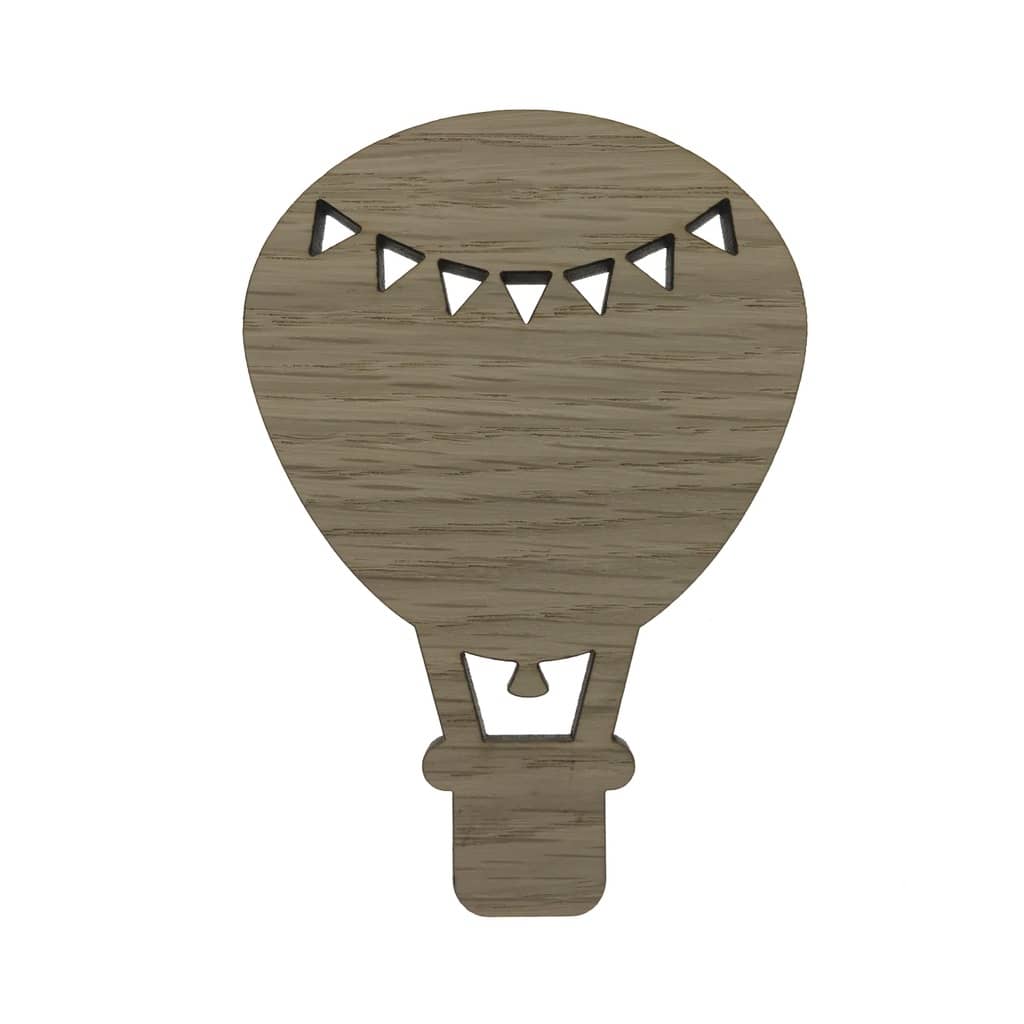 Med sin luftballonform og små flagudskæringer i toppen indfanger knagen barnets opmærksomhed og giver væggen et let og luftig udtryk. Den naturlige overflade i egetræsfiner passer ind i både nordiske og mere farverige indretningsstile og giver rummet varme.