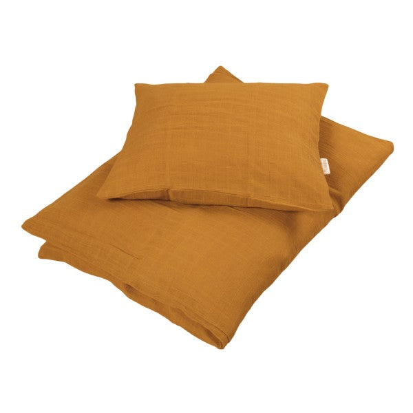 Filibabbas Golden Mustard Muslin baby sengetøj er en smuk og blød løsning til din babys seng. Det flotte ternede stofmønster i karrygul farve giver sengetøjet et moderne og stilfuldt udtryk. Sengetøjet er lavet af lækker muslinkvalitet, som er blød og behagelig for din baby at sove i. Det består af både dyne- og pudebetræk i størrelsen Baby (70×100). Med Filibabbas Golden Mustard Muslin baby sengetøj kan du give din baby en god nattesøvn i stilfulde omgivelser.