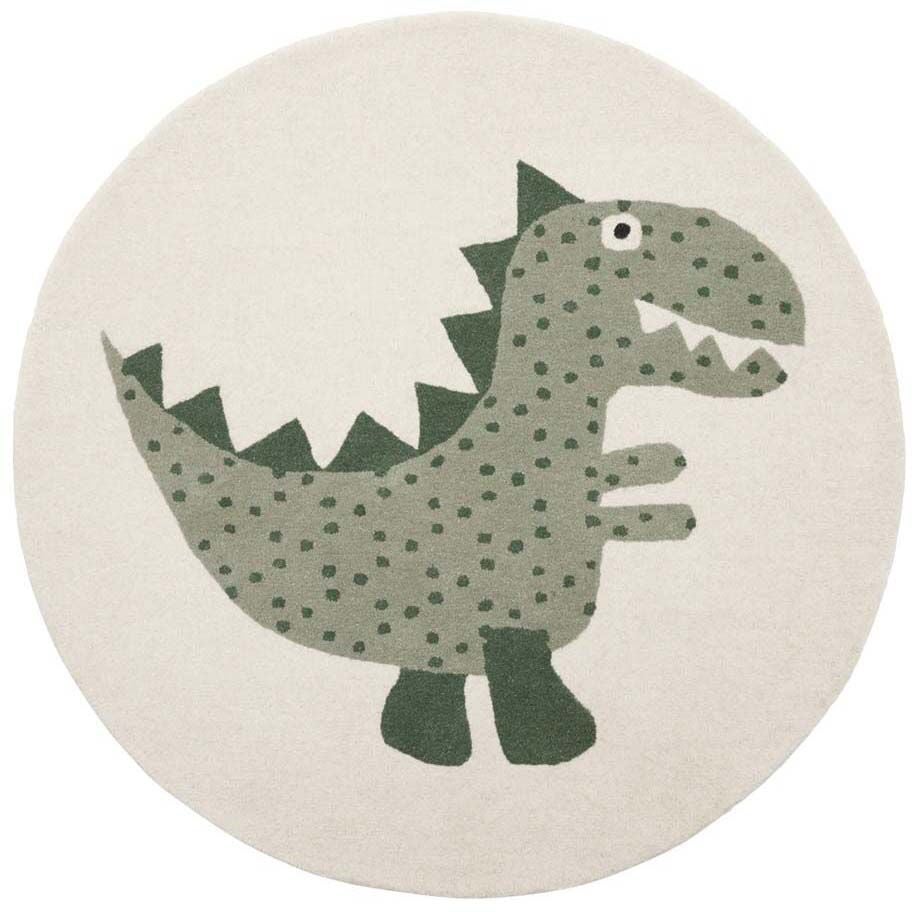 Theo Dino gulvtæppe fra OYOY. Gør børneværelset hyggeligt med dette sjove, runde tæppe.