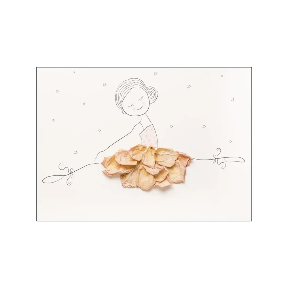 Giv børneværelset et strejf af elegance med denne smukke plakat fra Mette Handbergs ballerina-serie. Motivet viser Ballerina Amalie, der danser yndefuldt med en nederdel formet af detaljerede blomsterblade, der harmonerer perfekt med de enkle linjer i tegningen. Den enkle baggrund, prydet med små stjerner eller prikker, fremhæver ballerinaens skønhed på en kreativ måde. Denne plakat fra Poster & Frame vil uden tvivl tilføre rummet en unik og drømmende atmosfære, som både børn og voksne vil værdsætte.