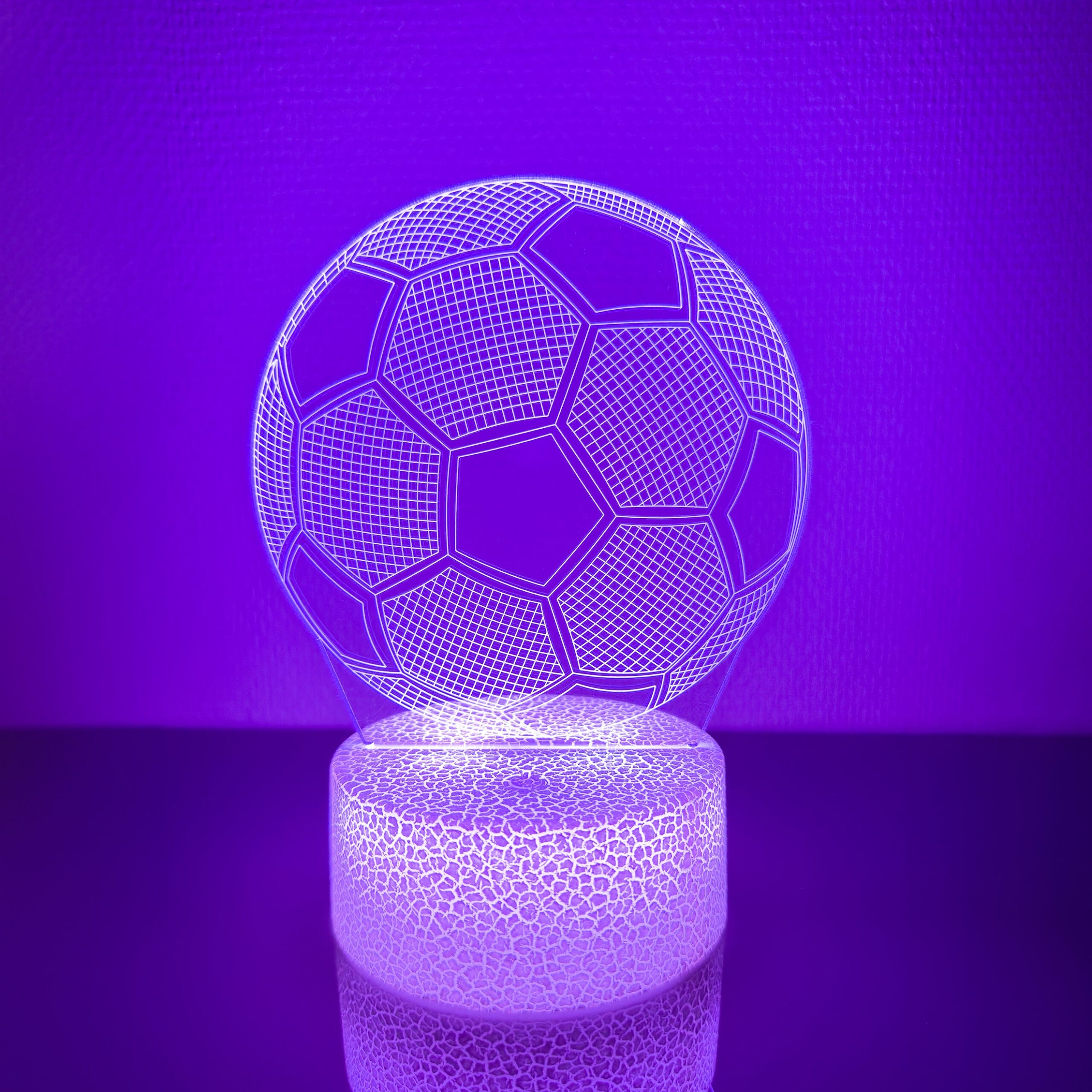 En cool 3D-lampe fra Powerpal med form som en fodbold! Denne 3D-lampe er en ny generation af natlamper – tag skridtet ind i fremtiden og lys mørket op med en rolig lyskilde, der har en cool hologrameffekt! Vælg jeres yndlingsmodel, alle natlamper har en sej, krakeleret base for ekstra lys og et flot design. For at få den perfekte oplevelse kan barnet vælge sin yndlingsfarve og lysniveau. Skift farve og lysniveau med fjernkontrollen eller touch-knappen. Natlampen er en tryghed i natten, der passer til alle aldre, og er en pålidelig ven, der hjælper dit barn til at få en god nats søvn. Oplades med USB-kabel (medfølger).