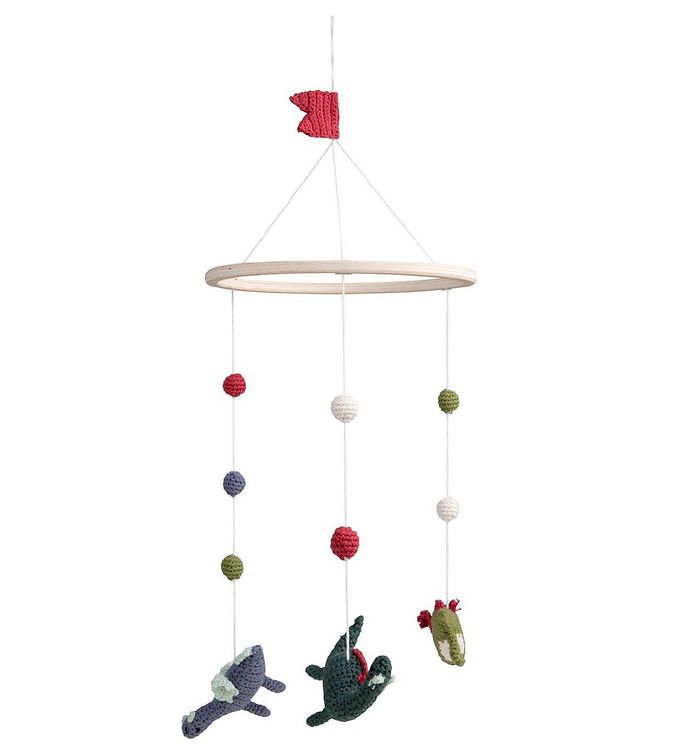 Oplev den magiske verden af Sebra med denne fortryllende mobile. Inspireret af Dragon Tales bringer den smukt hæklede dekoration eventyrets charme ind i børneværelset. Her hænger fine figurer og farverige kugler fra et elegant cirkulært ophæng, og en lille rød flag-lignende detalje på toppen tilfører en ekstra gnist. Med sit fantasifulde design stimulerer denne mobile både sanser og fantasi, mens den skaber en rolig og hyggelig atmosfære for de små. Perfekt som en unik gave eller en kærkommen tilføjelse til det stilfulde børneværelse. Lad dragefortællingerne svæve over børnenes hoveder og inspirere til nye eventyr.