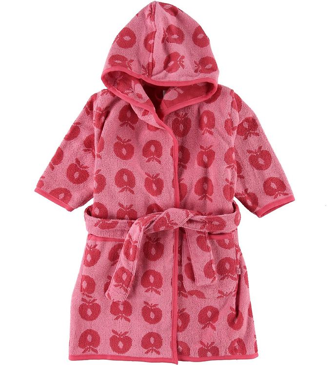 Forkæl dit barn med en vidunderlig lyserød badekåbe fra Småfolk. Den smukke Sea Pink nuance, prydet med et charmerende æblemønster i en lidt mørkere lyserød, gør denne badekåbe både stilfuld og hyggelig. Den bløde hætte og de lange ærmer sikrer ekstra varme og komfort, mens det medfølgende bælte giver en perfekt pasform omkring taljen. Ideel til brug efter badet eller på en afslappende dag derhjemme, kombinerer denne badekåbe funktionalitet med et sødt og legende design, som både børn og forældre vil elske.