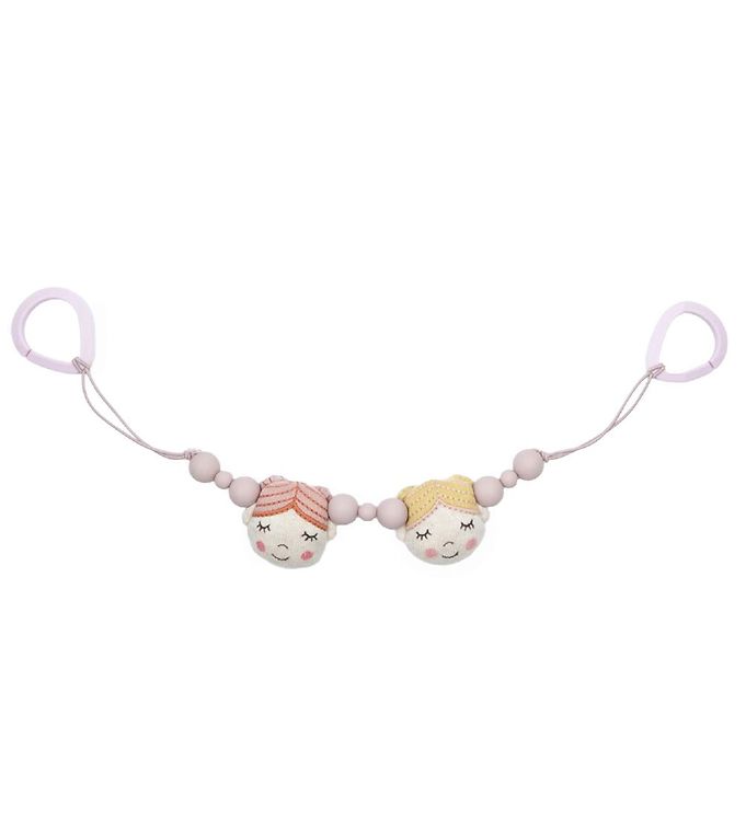 Giv din barnevogn et charmerende løft med denne barnevognskæde fra Smallstuff. Kæden er dekoreret med to søde dukkeansigter, der har lukkede øjne, hvilket skaber en rolig og drømmende effekt. Mellem dukkeansigterne er der perler, som tilføjer en ekstra dimension til det iøjnefaldende design. Den blide kombination af lyserøde og beige nuancer passer perfekt til de fleste barnevogne. Kæden er udstyret med praktiske ringe i hver ende, så den nemt kan fastgøres. En ideel måde at underholde dit barn under gåturen og samtidig tilføje lidt ekstra stil til din daglige udflugt.
