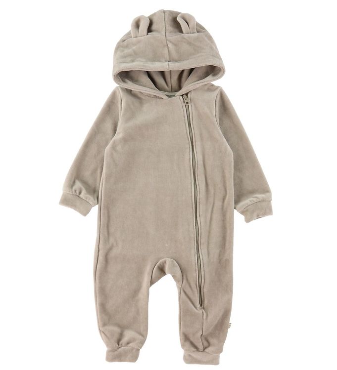 Oplev komfort og stil med denne vidunderlige heldragt fra Smallstuff, perfekt til de mindste. Dragten er udført i blød velour i en diskret, lys brun eller beige nuance, ideel til både drenge og piger. De små, runde ører på hætten tilføjer et charmerende touch, mens den skrå lynlås fra skulderen til benet gør det let at skifte tøj uden besvær. Med lange ærmer og ben sikrer denne dragt, at dit barn forbliver varmt og trygt, uanset hvor legesyge eventyr dagen bringer.
