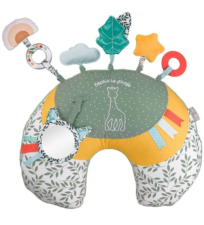Oplev glæden ved Sophie la Girafe aktivitetslegetøjspuden i en forfriskende grøn nuance. Denne U-formede pude er ikke blot en visuel fornøjelse med sine livlige mønstre og farver, men også en sensorisk rejse for de små. Med forskellige teksturer og vedhæftede elementer som farverige figurer og bånd, er den designet til at stimulere og underholde. Puden er en ideel ledsager til at fremme dit barns udvikling gennem leg, og den bringer et strejf af farverig glæde ind i hverdagen.
