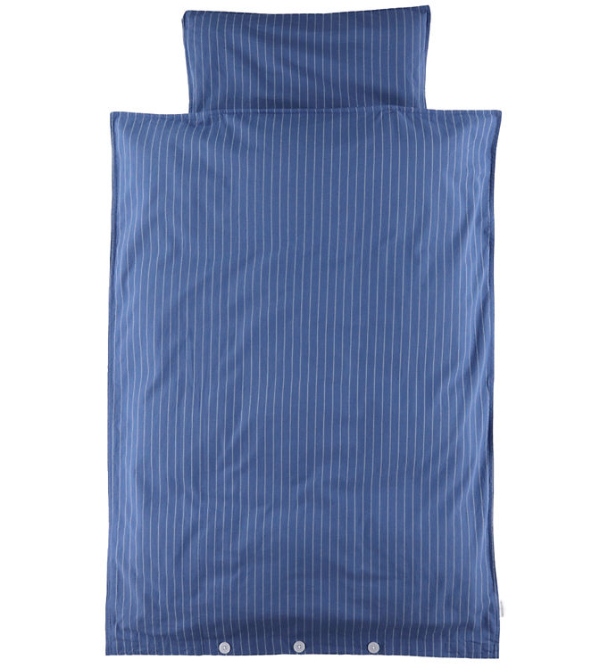 Oplev den ultimative komfort for din baby med dette sengetøj fra Studio Feder. Det elegante sæt, i en smuk mørkeblå nuance med fine, lyse lodrette striber, tilføjer et stilfuldt og enkelt udtryk til børneværelset. Sættet indeholder både pudebetræk og dynebetræk, hvor dynens knaplukning forneden sikrer, at den bliver på plads natten igennem. Dette sengetøj i Winter Dip design kombinerer æstetik med funktionalitet og giver en rolig og afslappende atmosfære til din lille ens søvn. Perfekt til dem, der ønsker både kvalitet og stil i børneværelset.
