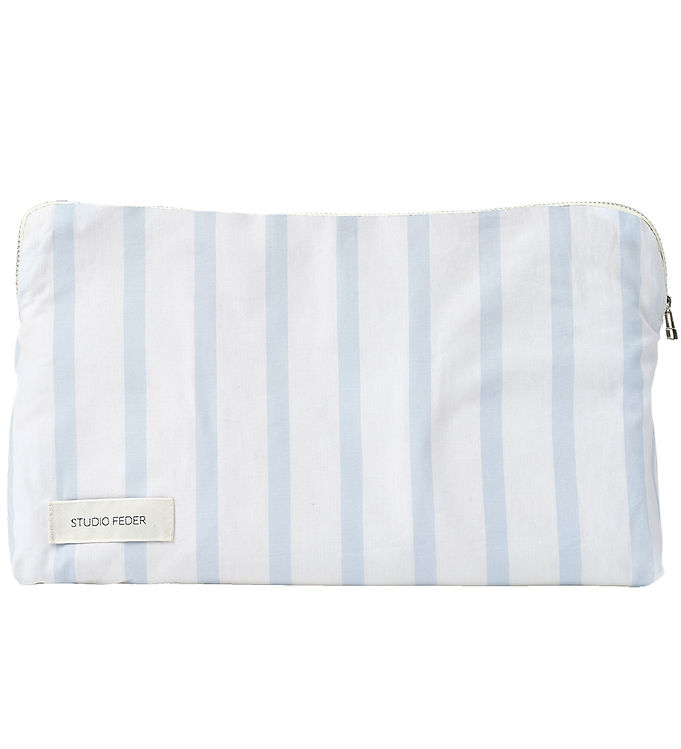 Oplev en elegant og praktisk løsning til børnefamilier med denne stilfulde toilettaske fra Studio Feder i det charmerende Celia – L’Air design. Tasken præsenterer sig med et frisk og moderne look, der kombinerer lyseblå og hvide striber, hvilket gør den til et perfekt tilbehør til både hjemme og på farten. Den funktionelle lynlåslukning øverst sikrer, at alle dine nødvendigheder holdes sikkert på plads, mens den diskrete etiket med “STUDIO FEDER” tilføjer et strejf af eksklusivitet. Denne toilettaske er både praktisk og æstetisk tiltalende og passer perfekt ind i enhver børnefamilies livsstil.