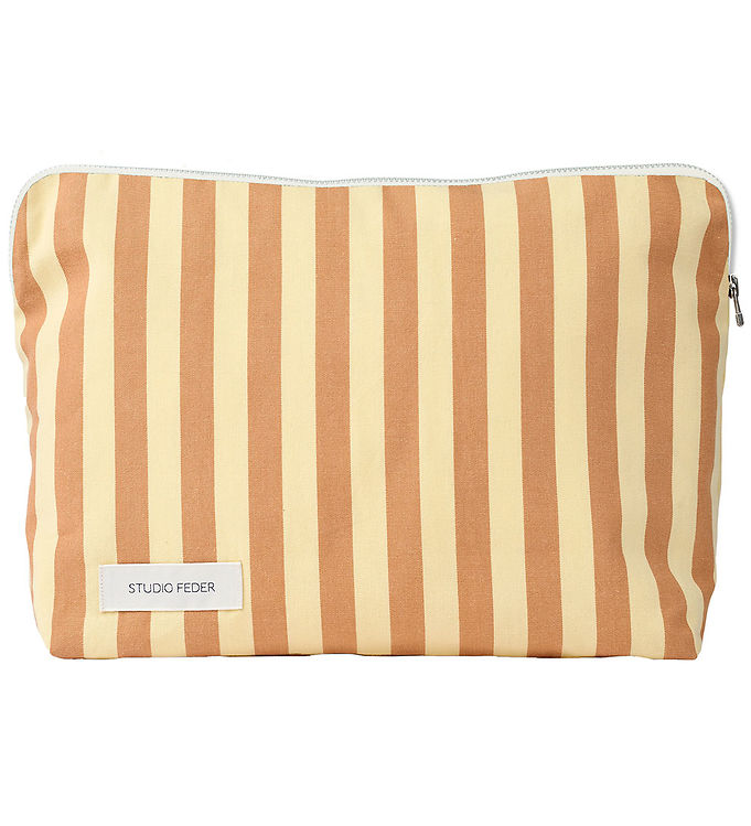 Oplev den elegante og funktionelle toilettaske fra Studio Feder, perfekt til både rejser og hverdagsbrug. Med sit stribede design i subtile lyse og mørkere nuancer bringer denne taske en følelse af afslappet elegance til dit barns rutine. Tasken, der er fremstillet i blødt stof, sikrer både holdbarhed og stil, mens den praktiske lynlås øverst gør det nemt at holde styr på alt fra tandbørster til små cremer. Det lille mærke med “Studio Feder” tilføjer et ekstra touch af eksklusivitet. Lad dit barn nyde små eventyr, uanset hvor de er, med denne charmerende tilføjelse til deres daglige nødvendigheder.