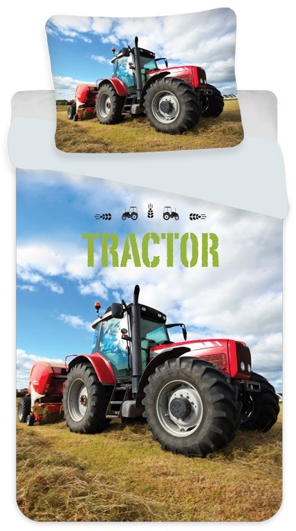 Super sejt sengesæt med motiv af en stor blå traktor på marken. Sengesættet har, på den ene side, et cool motiv af en stor og rød traktor der kører i marken. Vender du sengesættet om, får du en flot ensfarvet side. En oplagt gaveidé til alle der elsker traktorer og andre store maskiner.