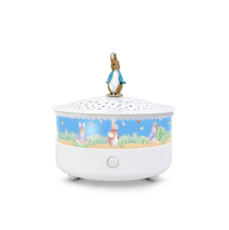 Natlampe fra Trousselier med en fin kanin. Den har automatisk slukning efter 15 minutter og grådaktivering hvilket betyder, at den tænder automatisk, hvis dit barn begynder at græde. Natlampen har en hyggelig vuggevise og projicerer en smuk stjernehimmel. Perfekt til en god nats søvn for både dig og din baby.